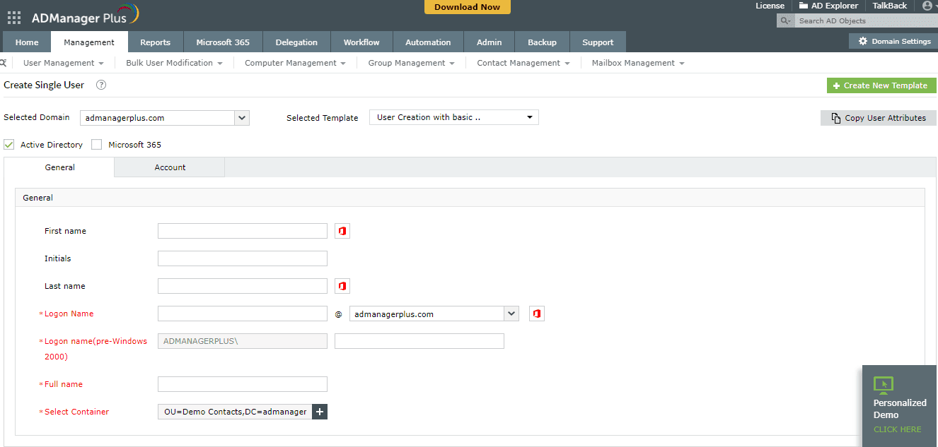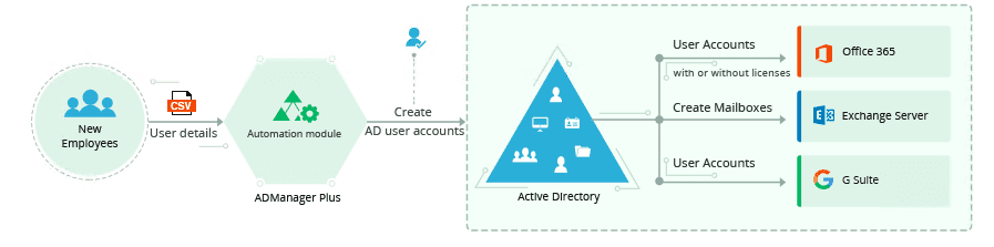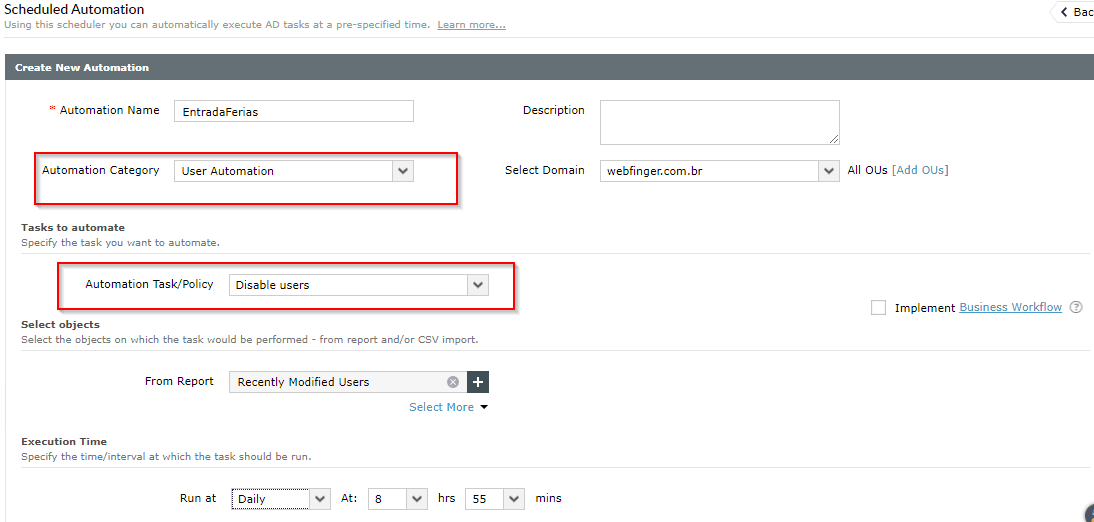 Quanto tempo é gasto com criação e modificações de usuários? Essa é uma tarefa constante em um ciclo sem fim. Nestes casos, podemos conceder um acesso mínimo de privilégios para a equipe de RH apenas para a criação de usuários com base em templates. Desta forma, basta preencher os dados e não são criadas solicitações diretamente para a equipe de TI.