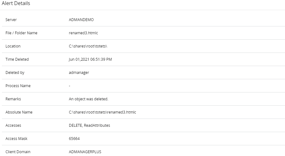 Chegou a hora de auditar todas as ações que configuramos acima. Seja para o usuário final, administradores, file servers e até servidores membros. Com o ADAudit Plus conseguimos rastrear todas as ações feitas pelo Active Directory criando alertas com scripts para obter uma ação imediata.