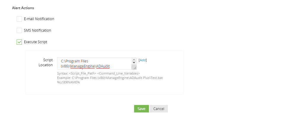 Ao disparar o alerta podemos executar um script automático para desabilitar o computador/usuário evitando maiores danos: