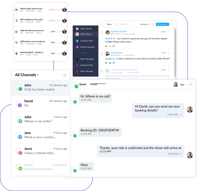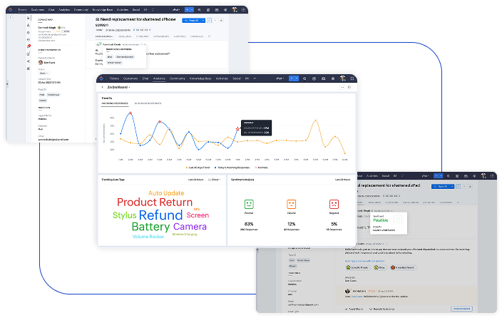 Garanta a fidelidade dos seus clientes por meio de um atendimento rápido, adaptado às necessidades da sua empresa e funcional para sua equipe. Com o Zoho Desk, você mantém sua presença constante, proporcionando respostas ágeis e otimizando toda a experiência de compra.