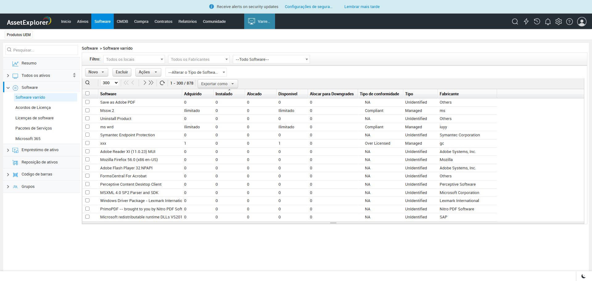 O AssetExplorer da ManageEngine é uma plataforma de gerenciamento de ativos de TI (ITAM) projetada para oferecer implantação rápida para gerentes de TI, para obter controle sem esforço de ativos de TI espalhados por vários sites.