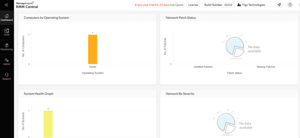 Um software de monitoramento de rede como RMM Central ajuda você a monitorar o desempenho de qualquer dispositivo baseado em IP e auxilia as empresas a visualizar remotamente o desempenho do seu sistema e monitorar serviços de rede, utilização de largura de banda, switches, roteadores e fluxo de tráfego e garantir efetivamente o máximo ROI para um orçamento de TI da organização.