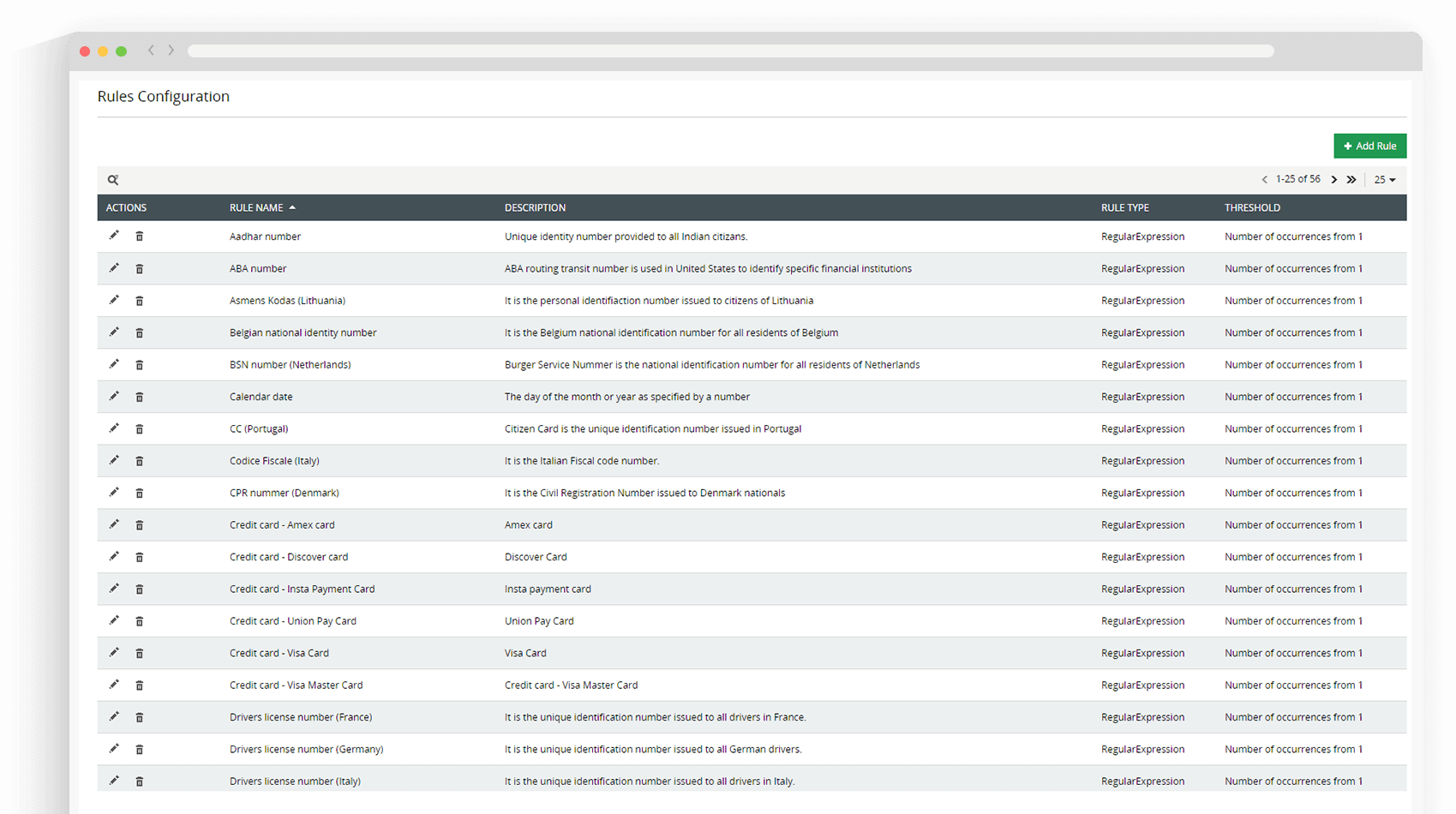 Obtenha acesso as regras de descoberta de dados, e até mesmo edite as políticas pré configuradas, que farão o scan de servidores de arquivos e a identificação dos dados sensíveis.