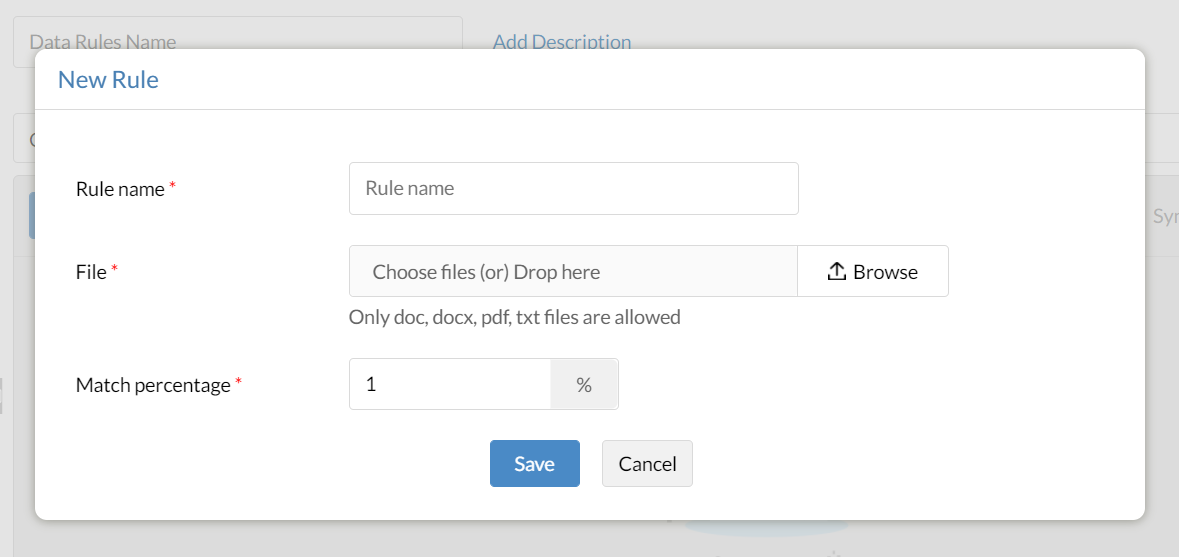 5 – Da mesma maneira, especifique o nome, o arquivo e a porcentagem de correspondência para correspondência de documento.