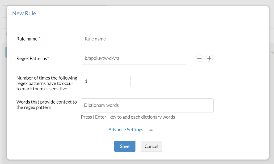 2 – Defina as configurações para todos ou para qualquer um dos padrões RegEx, correspondência de documentos, palavras-chave e extensões de arquivo.