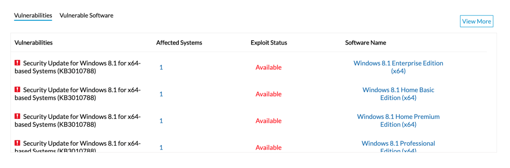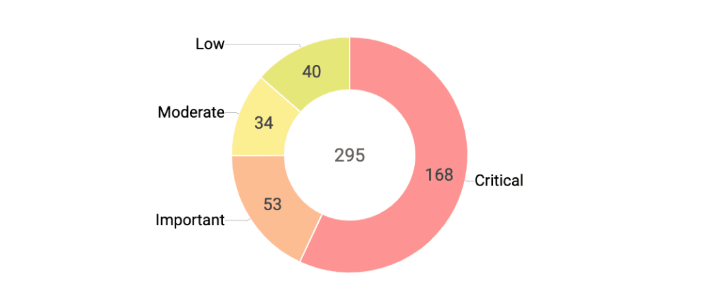 Não despreze a importância das classificações de gravidade; elas são o padrão universal de avaliação de risco de vulnerabilidade. O Resumo da gravidade da vulnerabilidade ajuda a rastrear o número de vulnerabilidades que você precisa resolver para cada nível de gravidade, fornecendo melhor visibilidade sobre quantas vulnerabilidades críticas, como a execução remota de código facilmente explorável (RCE), elevação de privilégio e vulnerabilidades alteráveis, são deixadas não endereçado em sua rede.