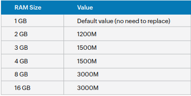 • O tamanho do heap é expresso em megabytes (MB). a. As configurações wrapper.java.initmemory e wrapper.java.maxmemory devem ser configuradas com o mesmo valor.