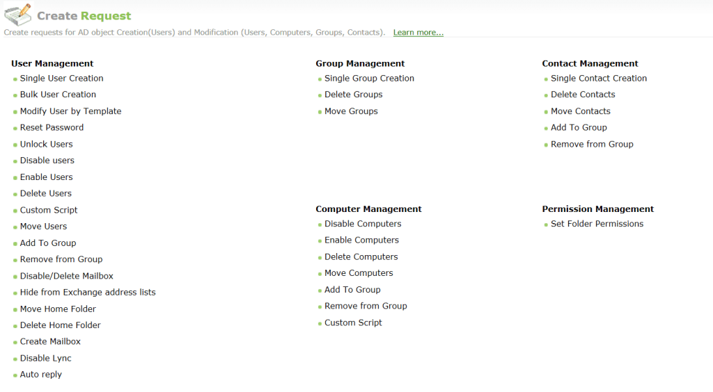 Ao implementar um fluxo de trabalho de negócios usando o ADManager Plus, você pode: