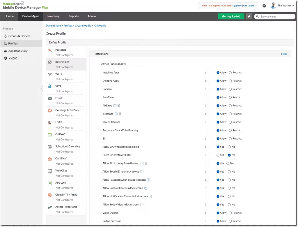 Conheça as principais funcionalidades do Mobile Device Manager Plus