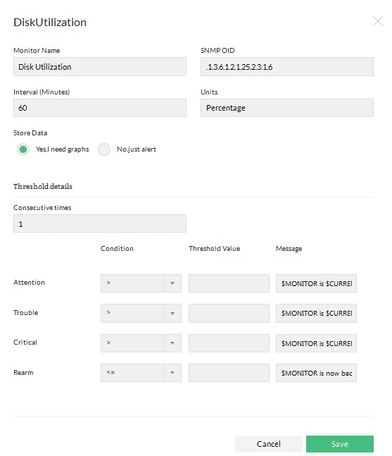 A maioria dos dispositivos de rede, hoje em dia, é capaz de enviar traps SNMP quando ocorre uma falha. Um bom sistema de monitoramento de falhas de rede deve ser capaz de suportar traps SNMP e fornecer informações significativas aos operadores. O OpManager faz exatamente isso fornecendo suporte para traps SNMP básicos prontos para o uso. Os operadores também podem adicionar suporte para traps de qualquer MIB SNMP personalizada. O OpManager pode extrair informações úteis que são enviadas com traps SNMP como ligações variáveis ​​(SNMP varbinds). Portanto, se você comprou dispositivos de diferentes fornecedores, tudo o que precisa fazer é obter acesso a essas MIBs específicas do fornecedor e pode facilmente ter o OpManager monitorando variáveis ​​críticas nesse dispositivo.