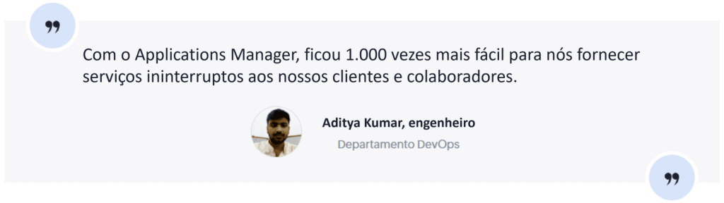 “O Applications Manager tornou o monitoramento do status dos cron jobs muito mais fácil. Ele ajudou a detectar problemas e reduzir nosso MTTR em 50%.”