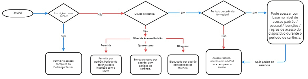 - O Acesso Condicional ao Exchange é compatível apenas com o Exchange Server e o Exchange Online. O CEA não pode ser configurado para o Office 365, pois a Microsoft não forneceu as APIs necessárias para soluções de MDM de terceiros.