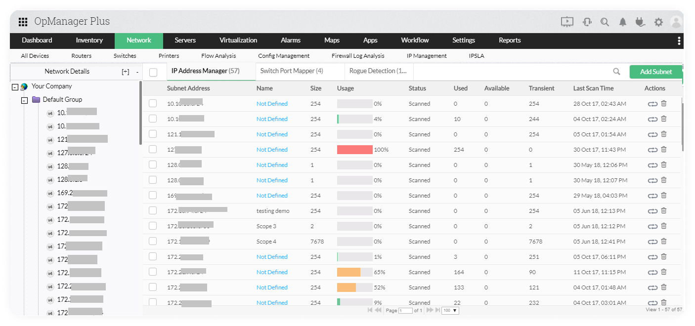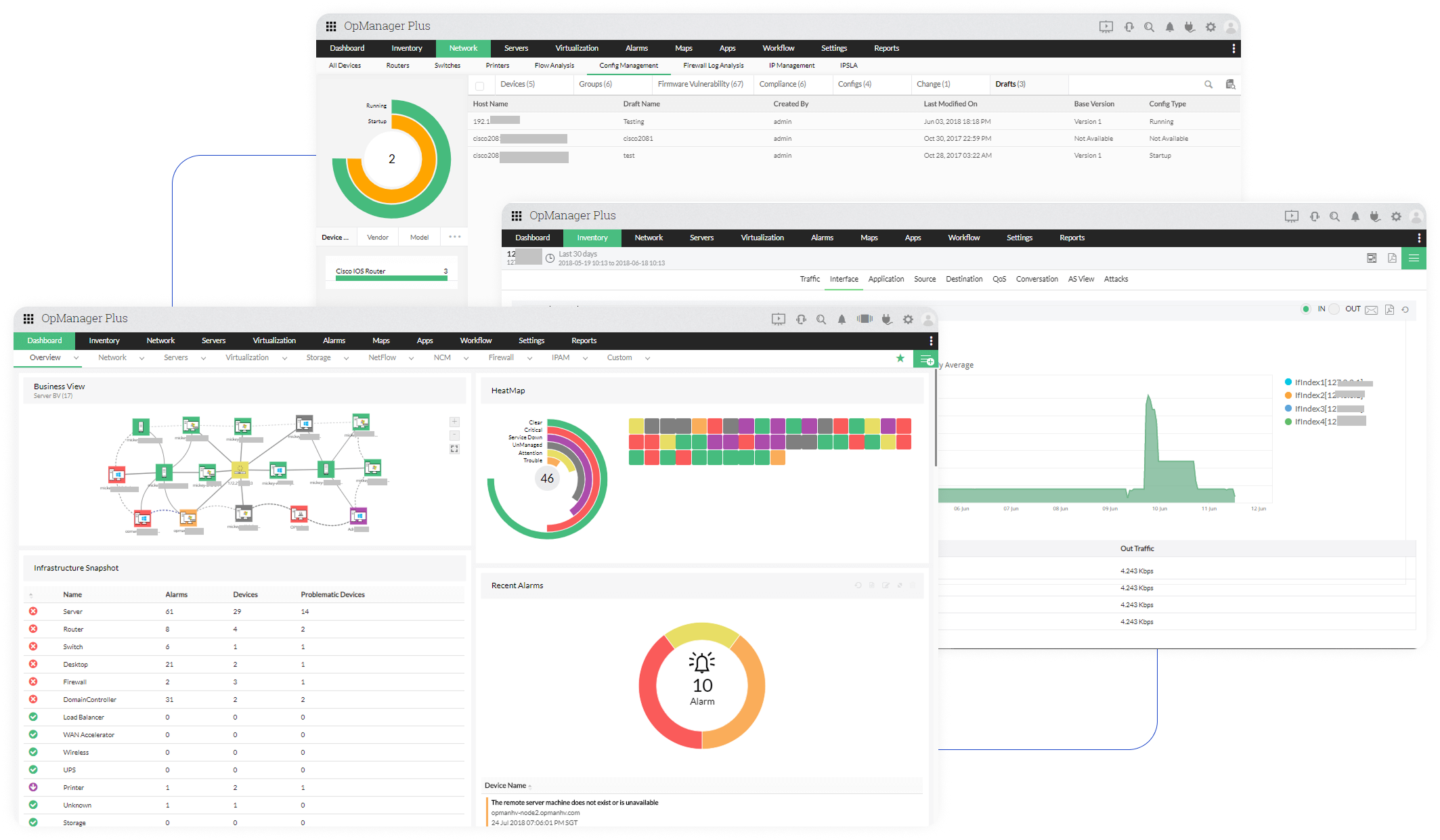 Gerencie configurações de vários dispositivos de infraestrutura de TI de mais de 200 fornecedores diferentes, implemente mudança em tempo real e gerenciamento de configuração com análise de configuração de rede, rastreamento de atividade do usuário e atualização remota de firmware.