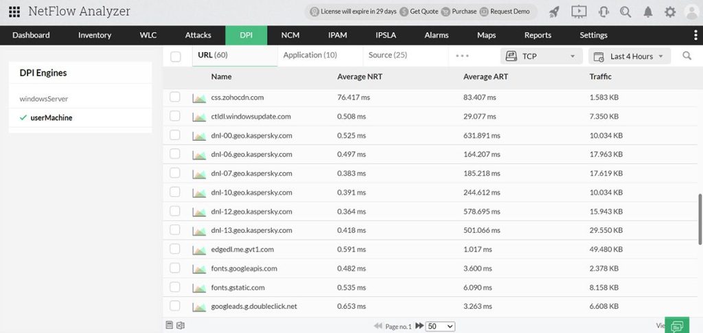 - Instalação de até dez sensores de pacote de rede (Necessário configurar como mecanismos de DPI) para uma licença do NetFlow Analyzer.