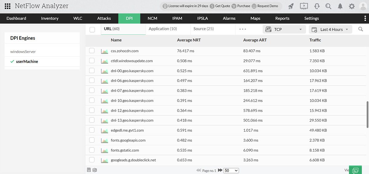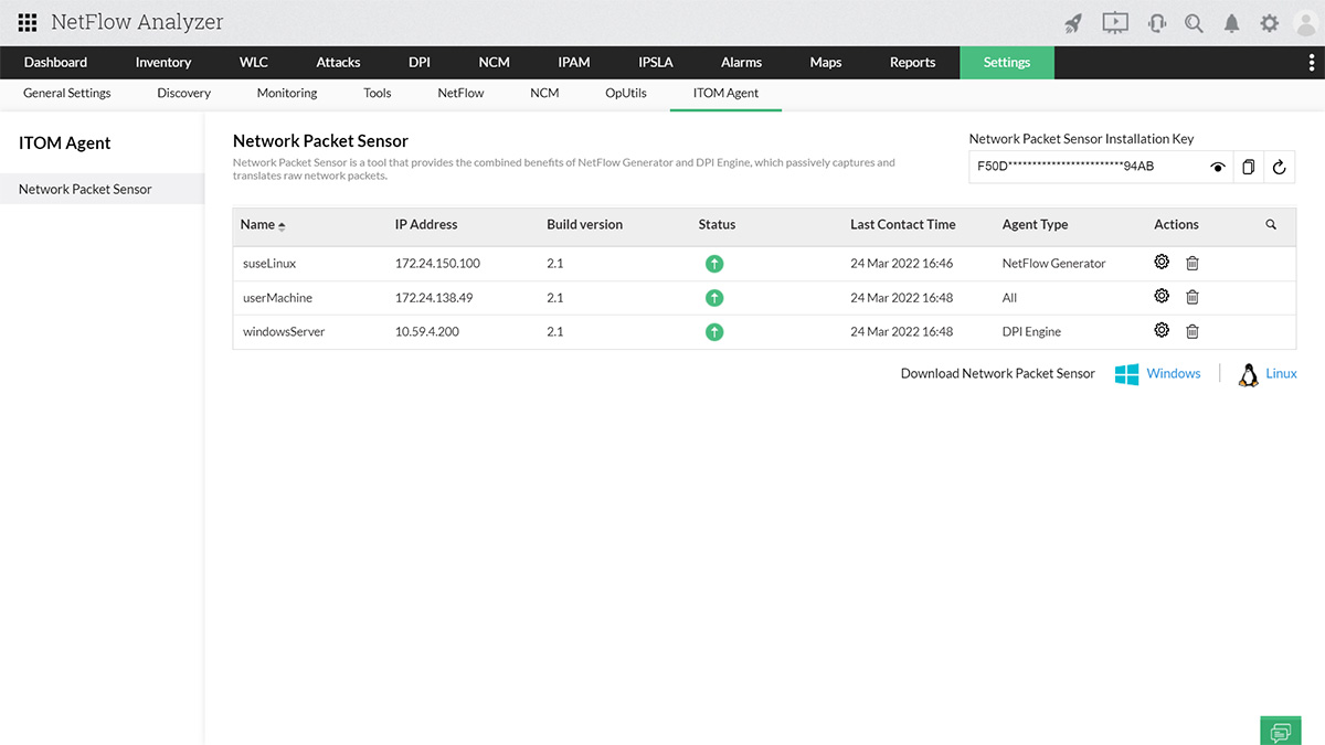 - Instalação de até dez sensores de pacote de rede (Necessário configurar como mecanismos de DPI) para uma licença do NetFlow Analyzer.