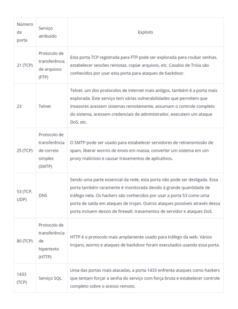 Aqui estão algumas das portas frequentemente mais exploradas:
