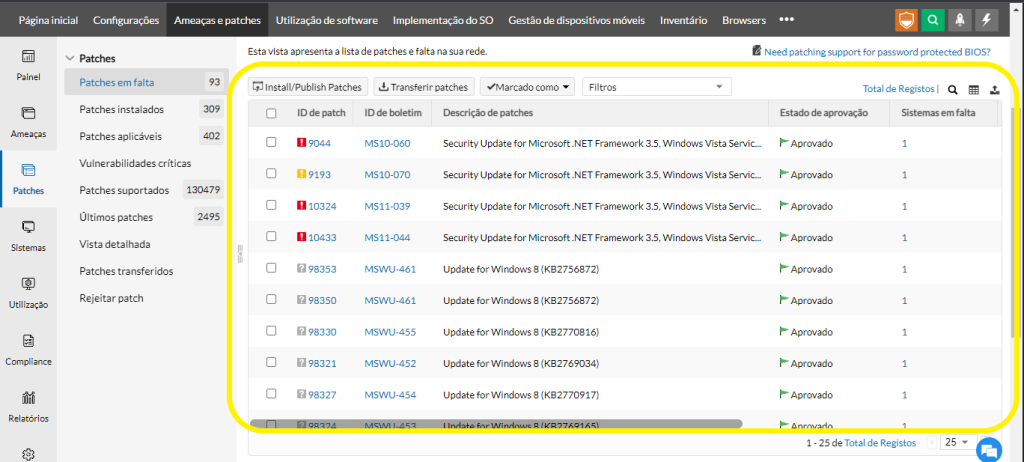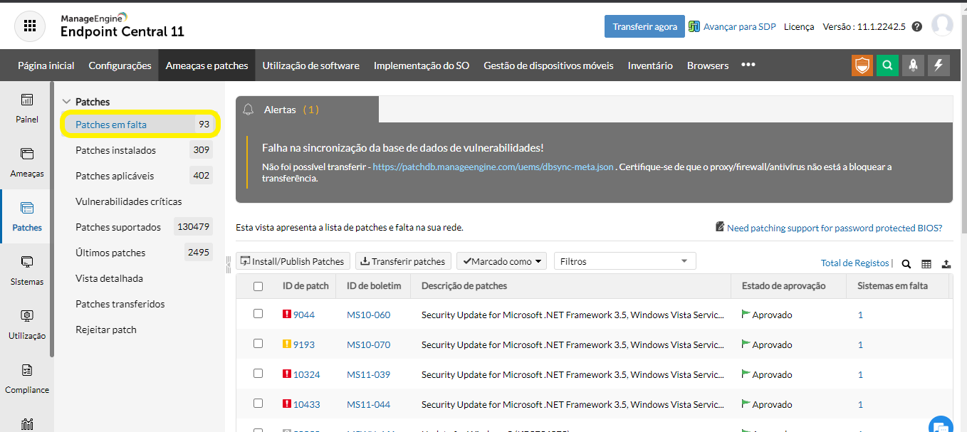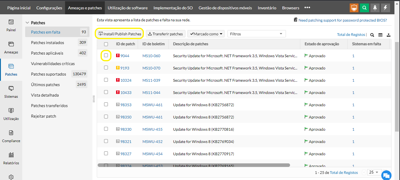 Para instalar patches específicos ausentes nos computadores afetados, siga as etapas abaixo: