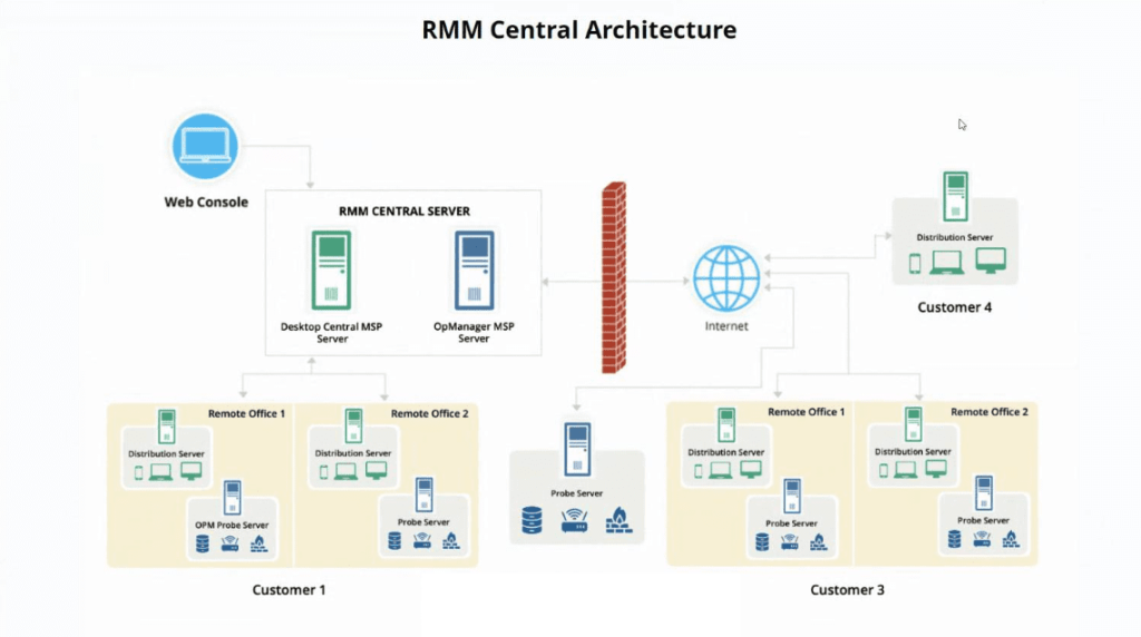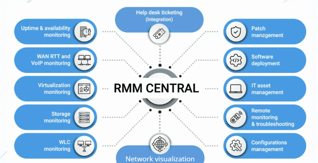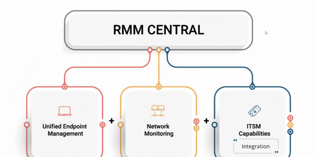 O RMM ou monitoramento e gerenciamento remoto é o processo de rastreamento, monitoramento e gerenciamento de endpoints (desktops, laptops, dispositivos móveis, servidores, etc.) para vários clientes.
