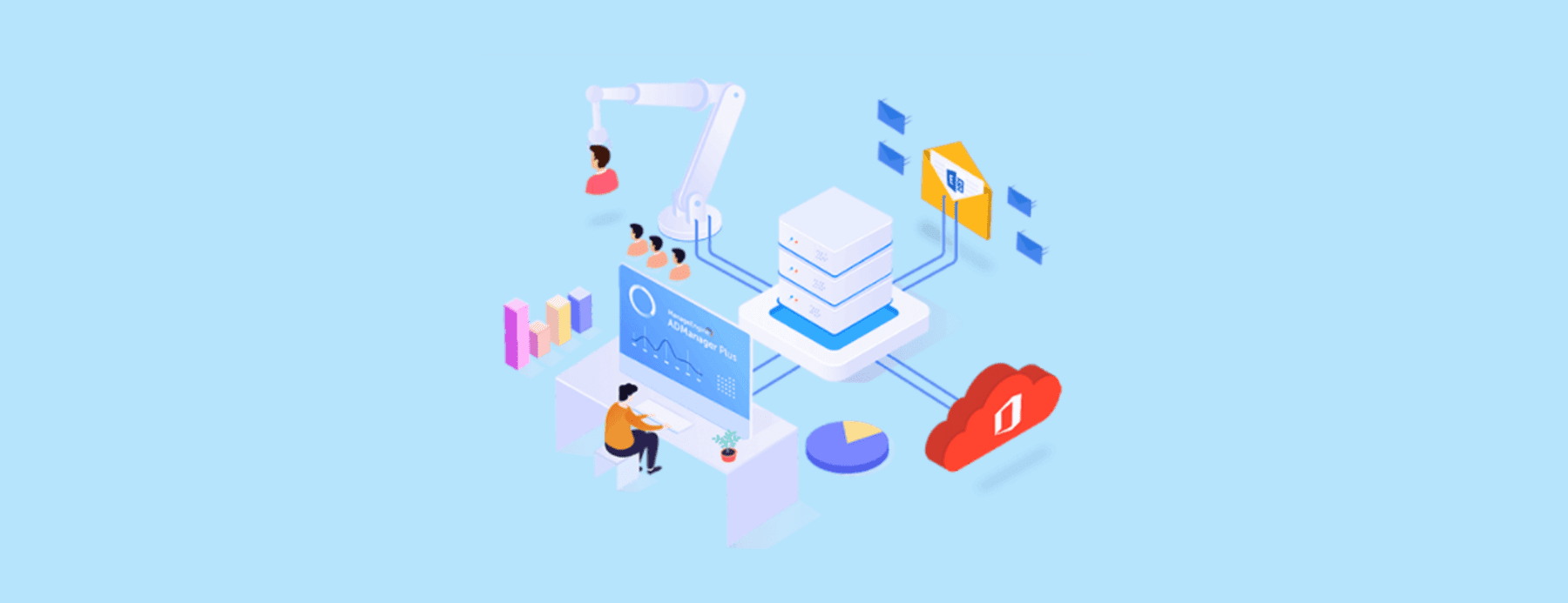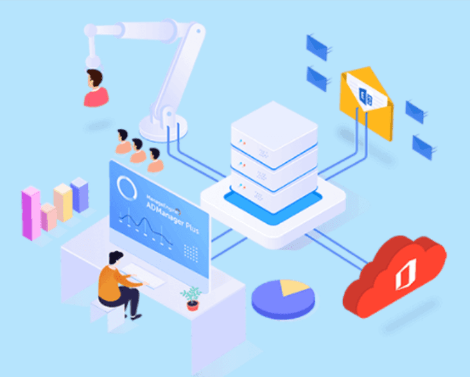 O ADManager Plus é uma solução para relatórios e gerenciamento do Active Directory que é fácil de usar e ajuda Administradores do AD em suas atividades do dia a dia. Com uma interface do usuário baseada na WEB, centralizada e intuitiva, o software lida com uma ampla variedade de tarefas complexas, como gerenciamento em massa de contas de usuário e outros objetos do AD. Delegue acesso baseado nas funções dos técnicos de Help Desk e gere uma extensa lista de relatórios do AD, alguns dos quais são requerimentos essenciais para a satisfação de auditorias de conformidade. E muito mais.
