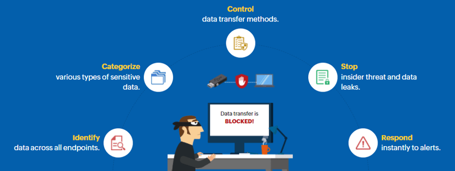 O Endpoint DLP Plus é uma solução DLP integrada que aproveita os recursos de data discovery para fazer a varredura diligente de todos os endpoints em sua rede e identificar com precisão os vários tipos de informações confidenciais presentes. Esses dados são então consolidados na forma de infográficos de painel e auditorias detalhadas para fornecer insights acionáveis que podem ajudar os administradores a criar protocolos precisos de segurança e gerenciamento de dados.