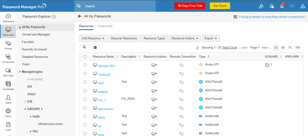 Com o Password Manager Pro da ManageEngine podemos gerenciar esses acessos e garantir o sigilo de senhas documentos de forma compartilhada. Podendo definir períodos de aprovações para utilização. Isso permitirá compartilhar de forma segura, acessos como “Administrador” no Windows, ‘root’ no Unix/Linux, ‘enable’ no Cisco, ‘sa’ no SQL, entre outros.