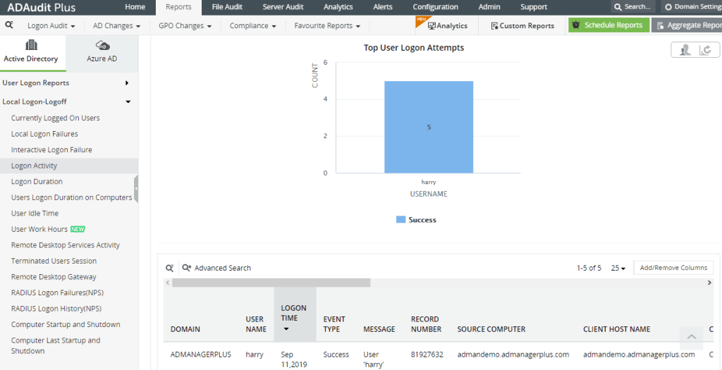 O ADAudit Plus é uma solução de auditoria em tempo real e de análise do comportamento do usuário (UBA) que ajuda a manter seu Active Directory, Azure AD, servidores membros e estações de trabalho seguros e compatíveis. Com a ferramenta, você pode:
